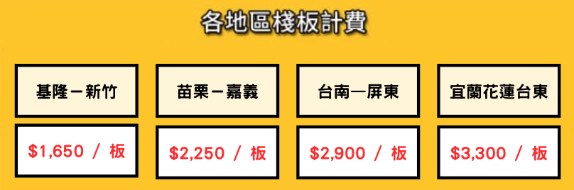 奶油貓的空運與海快計費體系是已快遞為主,現行配合的台灣境內運輸廠商是新竹物流,而所有的快遞派件如遇超大貨需加收棧板費用,因此以轉板費稱之。